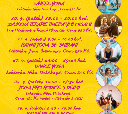 Kromě jógy naleznete v rozvrhu také tanec, přednášky, workshopy, semináře.